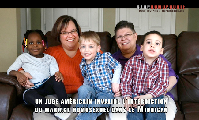 >> Michigan gay marriage ban struck down by judge Les lois sur le mariage sont du ressort des Etats et une trentaine d’entre eux ont amendé...
