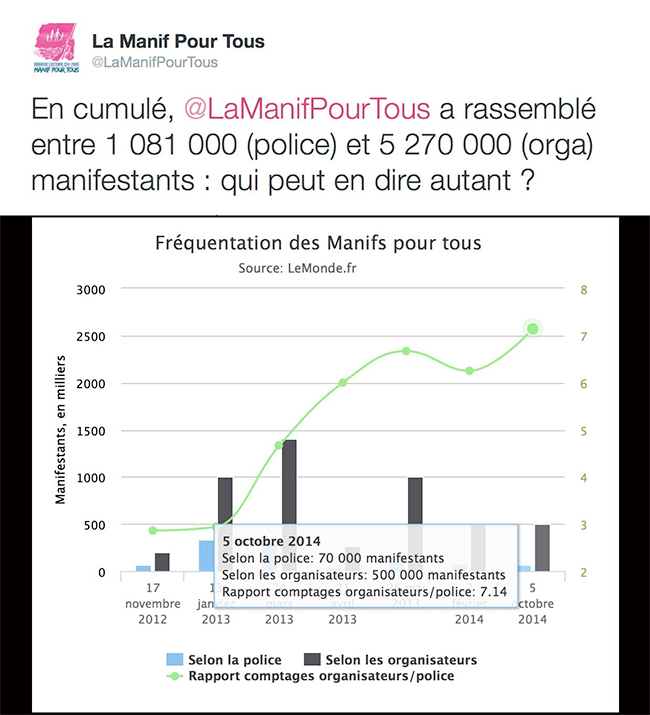 « Manif pour tous » : l’écart toujours plus grand entre les comptages de la police et des organisateurs