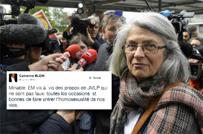 Bloc identitaire, Catherine Blein, Champs-Elysées, Corentin Poilbout, fn, homosexualite, homosexuels, Marine Le Pen, Odile de Melon, théorie du remplacement, Xavier Jugelé
