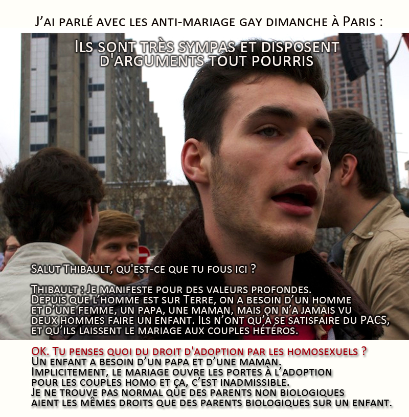 J’ai parlé avec les anti-mariage pour tous : Ils sont très sympas et disposent d’arguments tout pourris