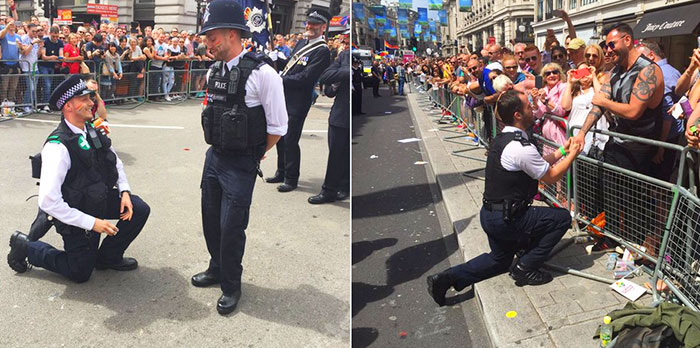 Londres : Deux policiers demandent leur compagnon en mariage en pleine Pride (VIDEOS)