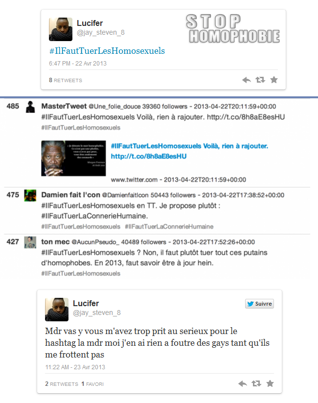 Dans la soirée du lundi 22 au mardi 23 avril, un nouveau hashtag a escaladé l’échelle du buzz : #ilfauttuerleshomosexuels. Réjouissant, non ? Comment faire pour...