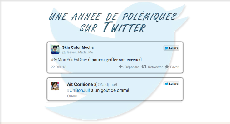 Quelques hashtags honteux tels #Unbonjuif ou #Simonfilsestgay ont marqué le réseau social en 2012. Flashback. Sur Twitter, plus de 500 millions d’utilisateurs peuvent dire ce qui...