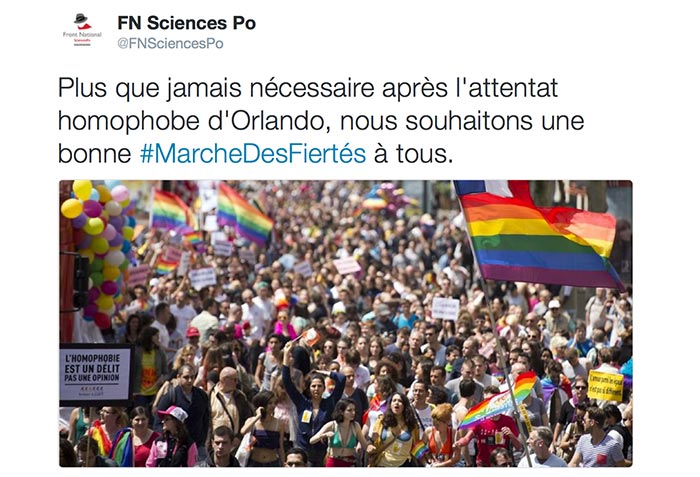 Si vous l'ignoriez, cadres et entités du parti vous le rappellent : le FN n’adhère pas « aux revendications communautaristes du lobby LGBT. »