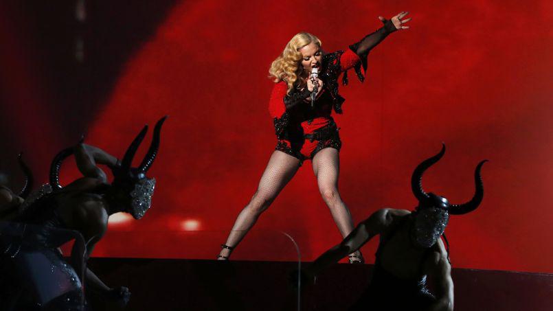 A 56 ans, la madone entourée de ses minotaures réalise une prestation de qualité mêlant show hautement théâtral et montage vidéo.