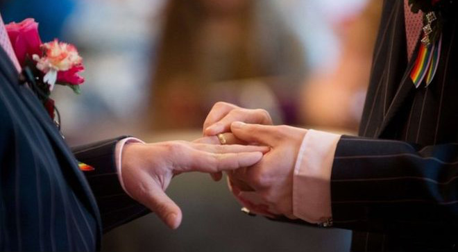 Une fois les registres de la Mairie signés, Daniel et Jean-Marcel ont scellé leur union dans une cérémonie officiée par le pasteur Valérie Mali.