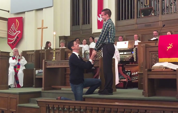 Invité à partager « l’histoire de sa foi » devant les autres fidèles, Trevor a saisi l'opportunité et demander la main de son ami.