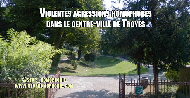 Deux agressions homophobes ont eu lieu dans la nuit du 13 au 14 mai 2013, dans ce parc du centre-ville de Troyes ! L’Est Eclair évoque...