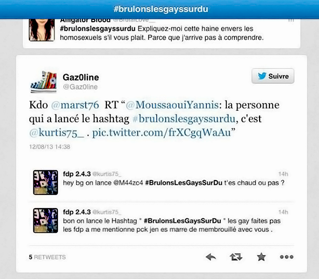 Après l’affaire des tweets antisémites, les tweets homophobes sont de retour. Le hashtag « #lesgaysdoiventdisparaitrecar » a été utilisé par 5.000 utilisateurs du réseau social, samedi 10 août,...