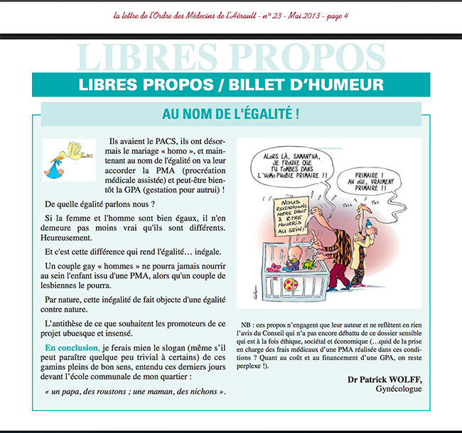 couple homosexuel, des nichons, des roustons, docteur Patrick Wolff, GPA, homo, homophobe, mariahe gay, médecins de l’Hérault, PMA, Un papa, Une maman