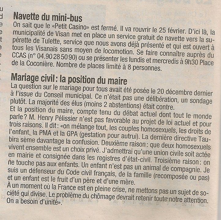 Stop Homophobie Un enfant n’est pas un animal de compagnie (?) Revue du Web 23/02/2013 Tels sont les propos du maire de Visan, contre le Mariage pour Tous.