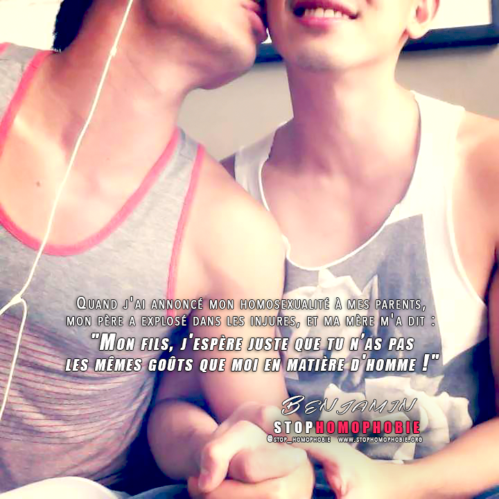 Bonjour, Je m’appelle Benjamin. J’ai lu et entendu pas mal de témoignages de personnes qui souhaitaient exprimer leur douleur du rejet de l’homophobie, notamment familiale… et je voudrais y joindre le mien. Une voix parmi d’autres, pour qu’ensemble nous puissions mieux nous faire « entendre ».
