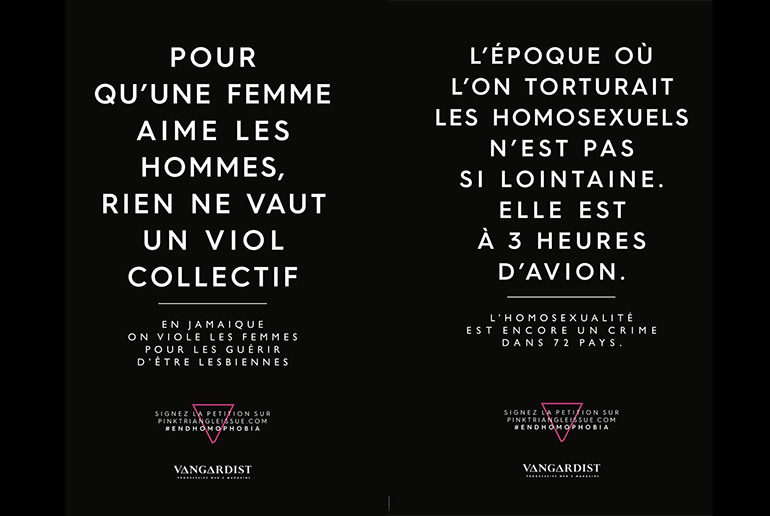 Nous avons été interpellés à propos de la récente campagne de communication « The Pink Triangle », lancée dans plusieurs villes françaises par Vangardist, magazine autrichien à clientèle ciblée LGBTQI+.
