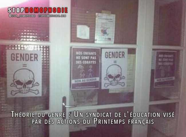 Ces actions – collage d’affiches anti « théorie du genre », tags ou jet de souris de laboratoire dans un local – ont été menées ces derniers jours contre des locaux du syndicat notamment à Paris et Orléans, selon une source syndicale.