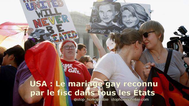 Même s’il n’est pas sûr que tous apprécient, les partisans du mariage homosexuel viennent de remporter une victoire de taille. Car si tous les Etats n’autorisent pas le mariage entre personnes du même sexe, l’administration fiscale, elle, a décidé de le reconnaître, pour le meilleur et pour le pire.