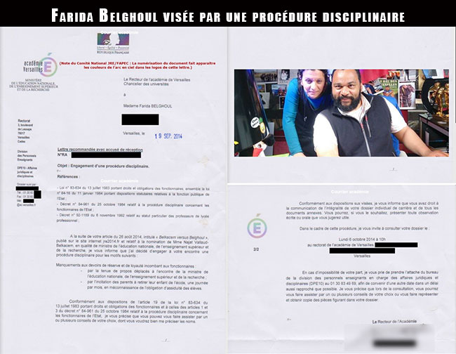 Le recteur a dit à l’AFP avoir engagé cette procédure « normale et banale » à la suite d’un article du 26 août publié sur le site jre2014.fr sous le titre « Belkacem versus Belghoul » dans lequel Mme Belghoul compare la nomination de la ministre « chouchoute du lobby trans, bi et cie » à « une déclaration de guerre aux familles de France ».