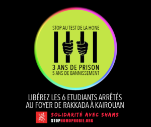 L’association « Shams », pour la dépénalisation de l’homosexualité en Tunisie, vient de lancer une nouvelle campagne sur les réseaux pour appeler à la libération de six étudiants, condamnés ce 10 décembre par le tribunal de Kairouan à trois ans de prison pour « homosexualité ». Ils ont été reconnus coupables après avoir subi un touché rectal, ce fameux test de la « honte », pendant les interrogatoires.