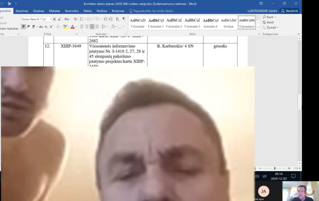 Il a pourtant été surpris, ce 2 décembre, lors d’une conférence téléphonique de la commission de la culture du parlement lituanien, avec un jeune homme qui apparait fugacement et torse nu dans le champ de sa caméra, qu’il éteindra, en toute hâte, avant de la rallumer pour réapparaitre seul.