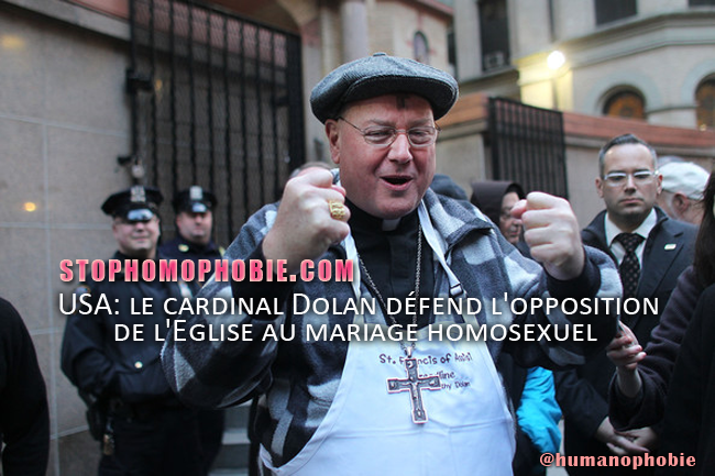 Le président de la conférence des évêques américains, le cardinal Timothy Dolan, a défendu dimanche la position de l’Eglise, en pointe aux Etats-Unis dans la lutte contre le mariage homosexuel, affirmant qu’elle se devait parfois d’être « déconnectée des problèmes actuels ».