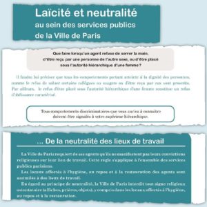 Un livret de 16 pages qui sera distribué dans les services municipaux, auprès des 5 500 cadres pour les aider à gérer les difficultés qu’ils peuvent rencontrer pour faire respecter la laïcité dans leurs services.