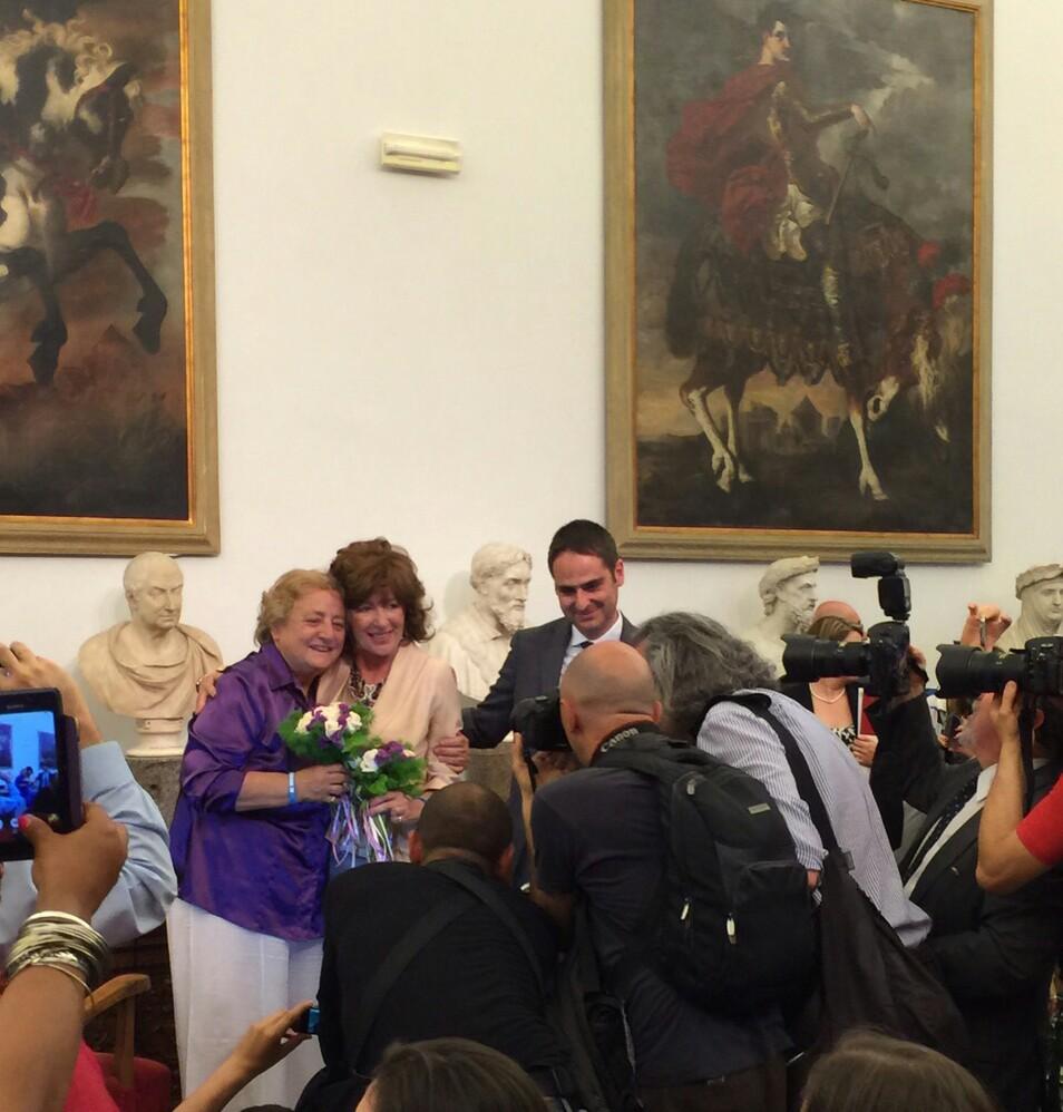 >> The first civil unions to be officially registered in Rome were celebrated today, as twenty couples became the first to register at City Hall.