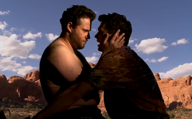 L’étrange road-trip en moto, avec Kim Kardashian nue et des paysages dignes de fonds d’écran Windows de la vidéo de « Bound 2 » ont donné envie aux deux acteurs et amis de rejouer le clip, scène par scène.