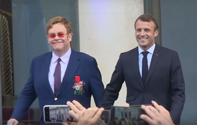 Les deux hommes sont apparus main dans la main, ce vendredi 21 juin, devant quelque 2.000 personnes rassemblées dans la cour de l’Elysée, pour la Fête de la Musique. En pleine tournée, Elton John, 72 ans, s’est vu décerner la Légion d’Honneur pour son engagement dans la lutte contre le sida. L’occasion d’un appel à la mobilisation internationale, avec l’objectif de « sauver 16 millions de vies », soit le nombre de personnes porteuses du VIH, sans accès à un traitement dans le monde.