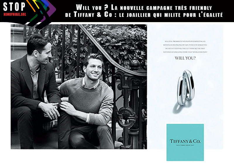 Cette année, la tendance printemps-été chez Tiffany’s sera gay friendly ! La célèbre institution fondée en 1837, « numéro un des joailliers internationaux et des maisons de création américaine », vient de lancer sa nouvelle campagne. Et, pour la première fois de son histoire, alors même que la Cour Suprême doit trancher sur la constitutionnalité du « mariage gay », le « bijoutier emblématique » choisit d’inclure un couple homosexuel pour vanter les mérites de l’Amour qui vous pousse aux engagements.